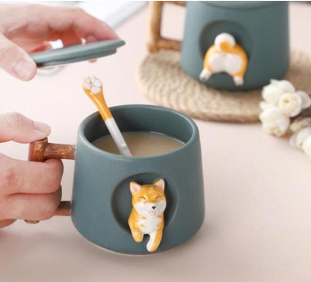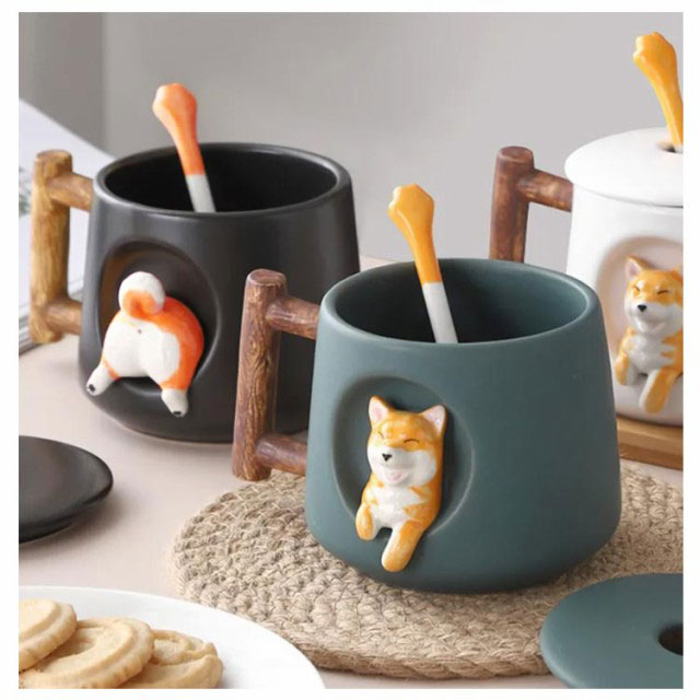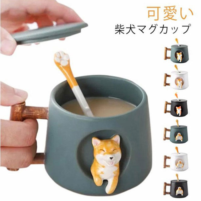 柴犬 マグカップ 保温 蓋 蓋付き 北欧 おしゃれ 柴犬柄 コーヒーカップ 大きい 陶器 ハンドメイド ティーカップ コップ ティーカップ 耐熱ガラス お茶カップ カフェマグ キッチン雑貨 お茶 洋食器 和食器 冷蔵庫 ブラック ホワイト グリーン 黒 白 送料無料
