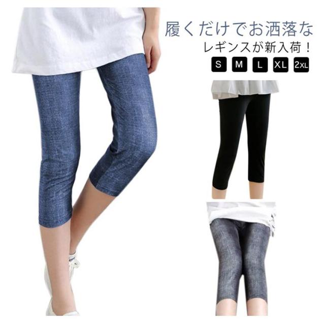 七分丈 クロップド丈 デニム レギンス 脚 効果 スリムレギンス レディース 送料無料 ストレッチ 美脚 スキニー 7分丈 レギンスパンツ レギパン スキニーパンツ レギンス 総柄 夏用 春夏 夏 レイヤード 梅雨 猛暑 UVカット 冷感