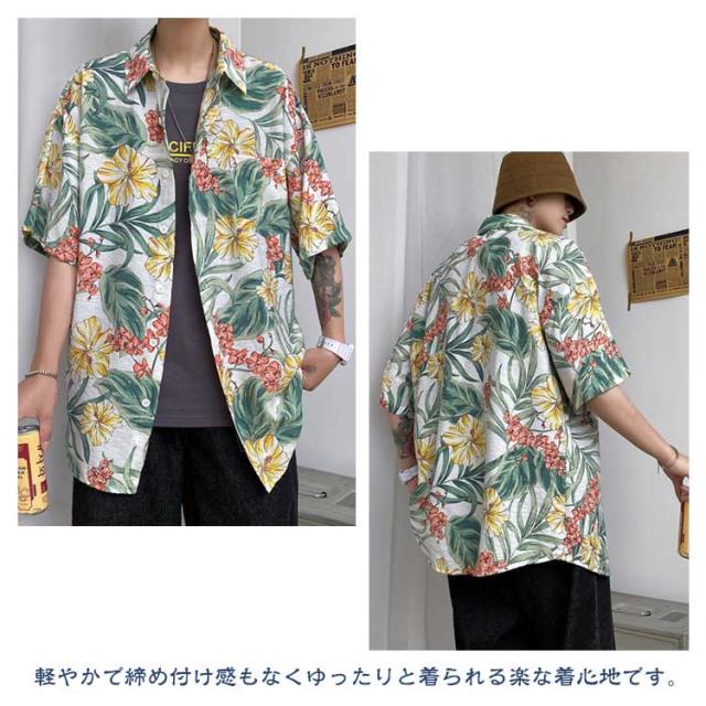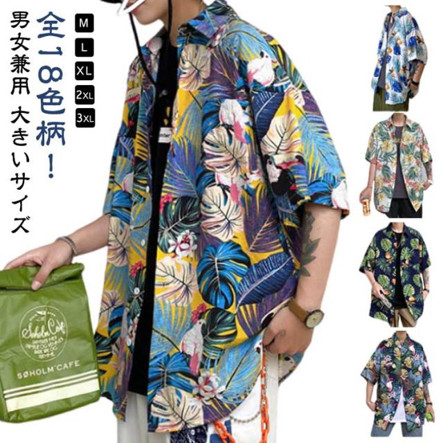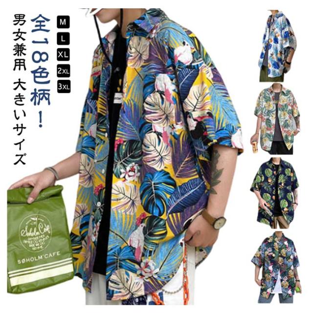 アロハシャツ メンズ シャツ 総柄 半袖 ハワイアン ボタン 夏 祭 海 アウトドア リーフ ボタニカル 花柄 レディース 男女兼用 大きいサイズ ビッグサイズ カジュアルシャツ 半袖シャツ トップス 柄シャツ メンズシャツ リゾート おしゃれ