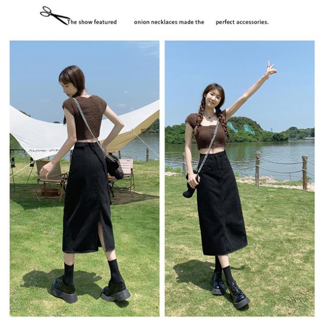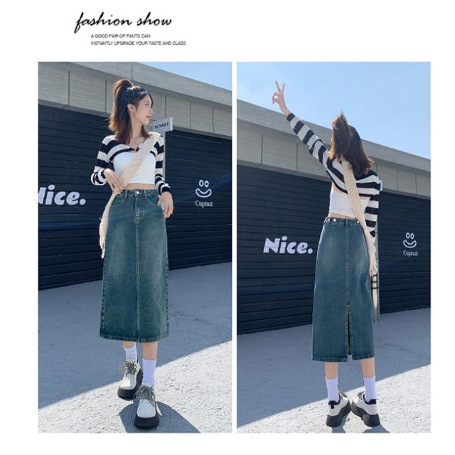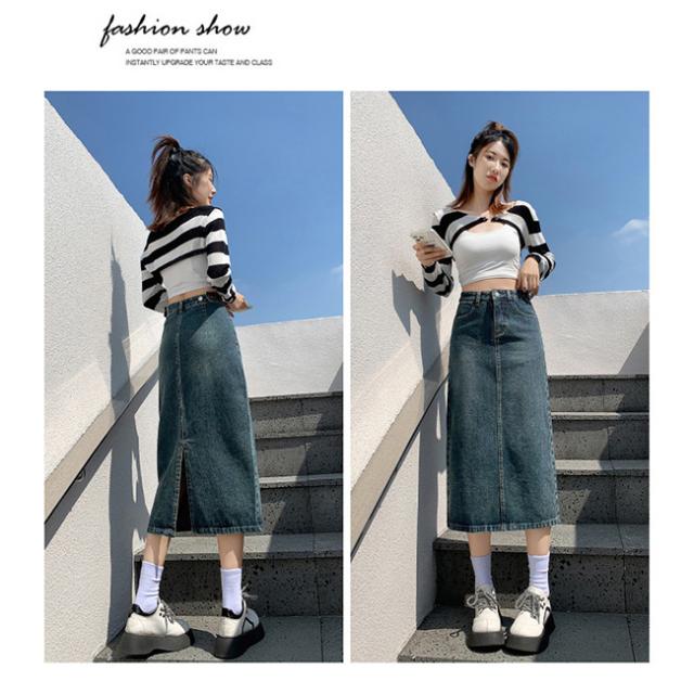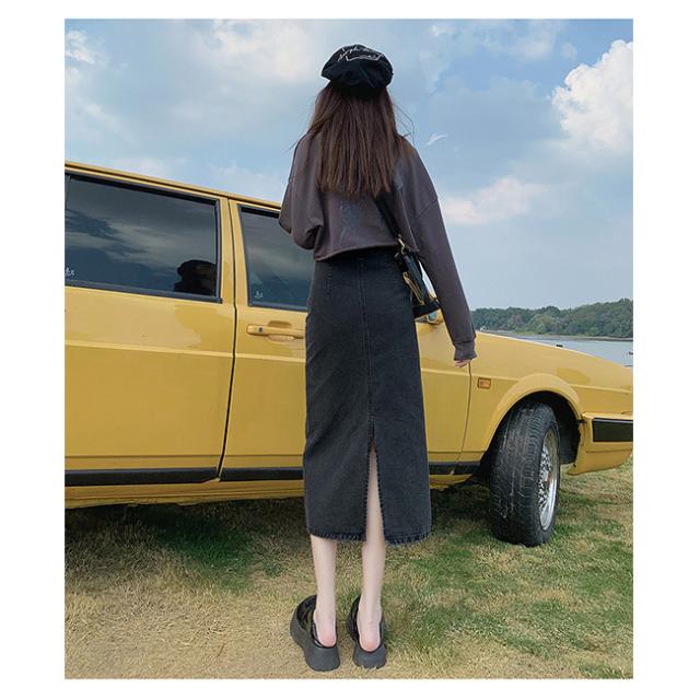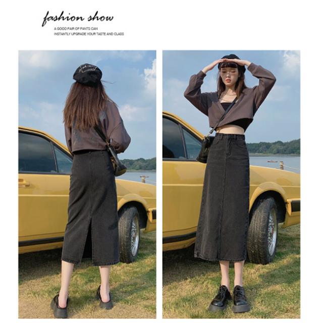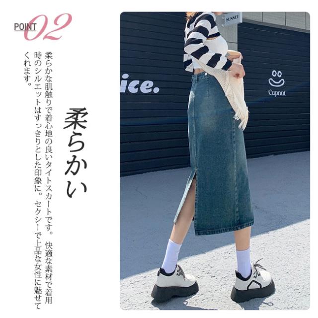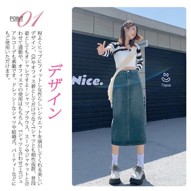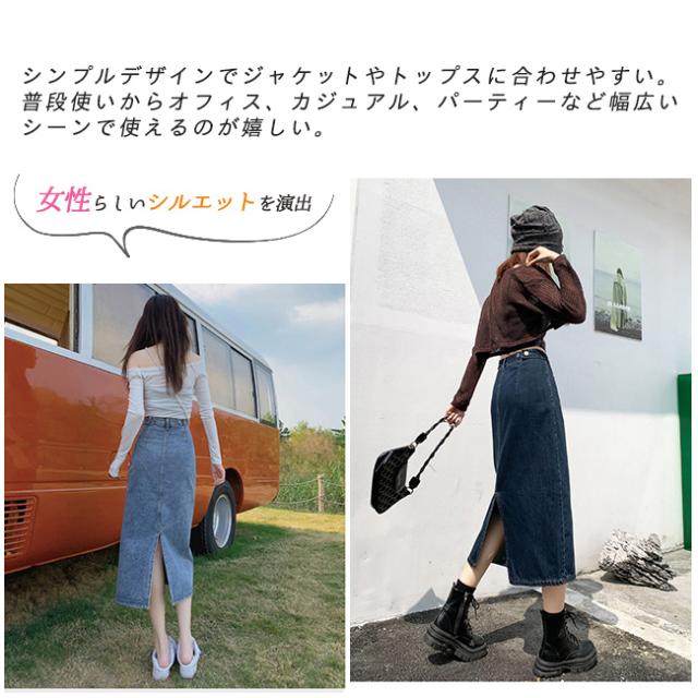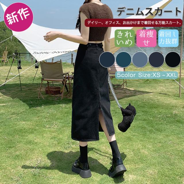 デニムスカート 美尻 スカート aライン 脚長効果 ロングスカート スリット Aラインスカートレディース マキシスカート ベージュ 黒 ブラック ブルー 脚長効果 カジュアル オフィス