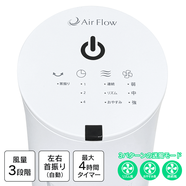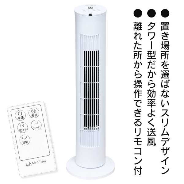 | 首振り 風量3段階 タイマー付 リモコン式タワーファン |