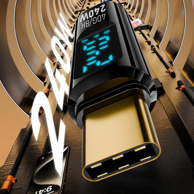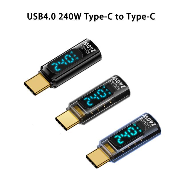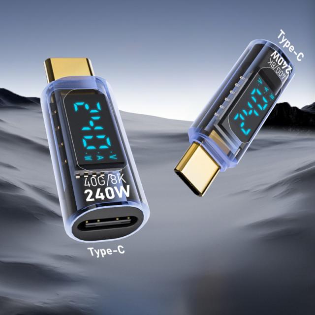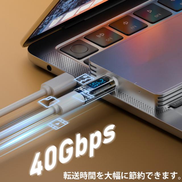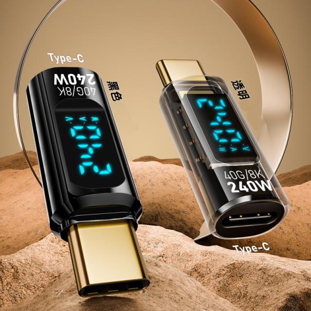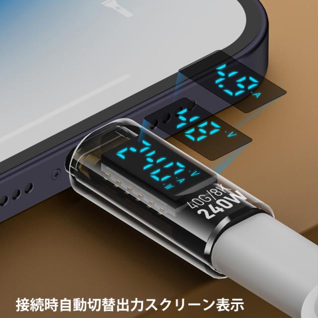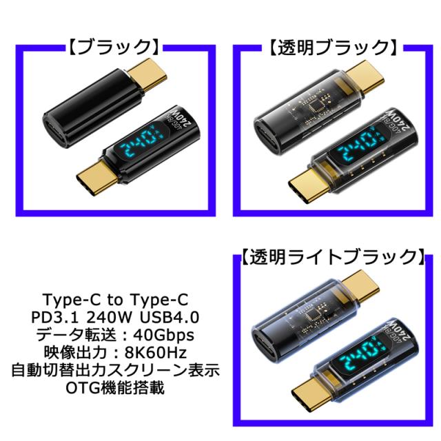 半透明 黒色 LED 出力 スクリーン表示 PD3.1 240W USB4 コネクター Type-C to Type-C 40Gbps 8K 60Hz データ転送 映像出力 充電 OTG機能 タイプC アダプター 軽量 ストレート型 USB-C対応