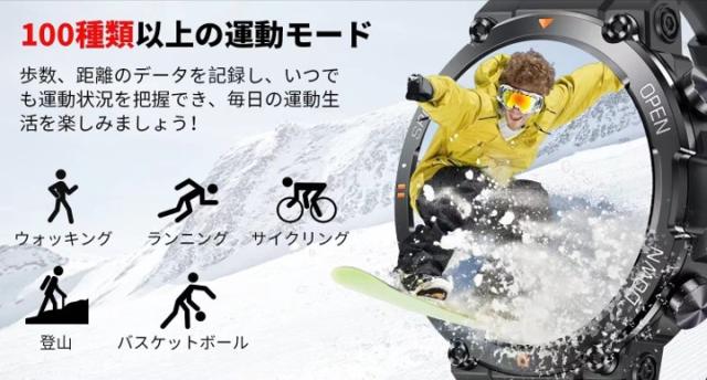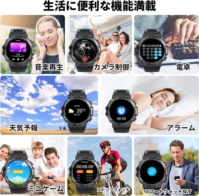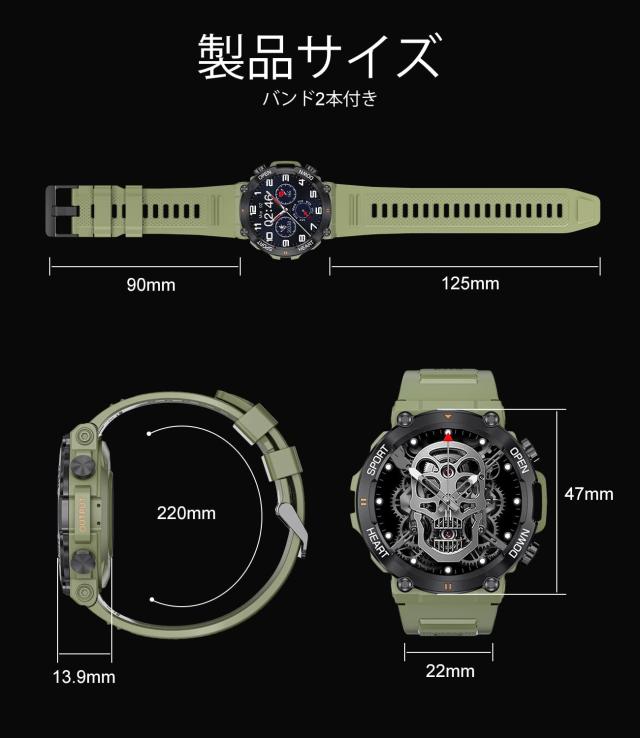 スマートウォッチ 丸型 円盤 本体 軍用規格 男性用 メンズ 腕時計 android アンドロイド 血圧測定 健康管理 心拍数 血中酸素