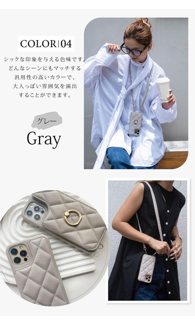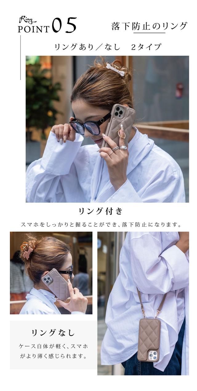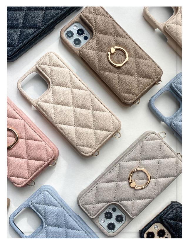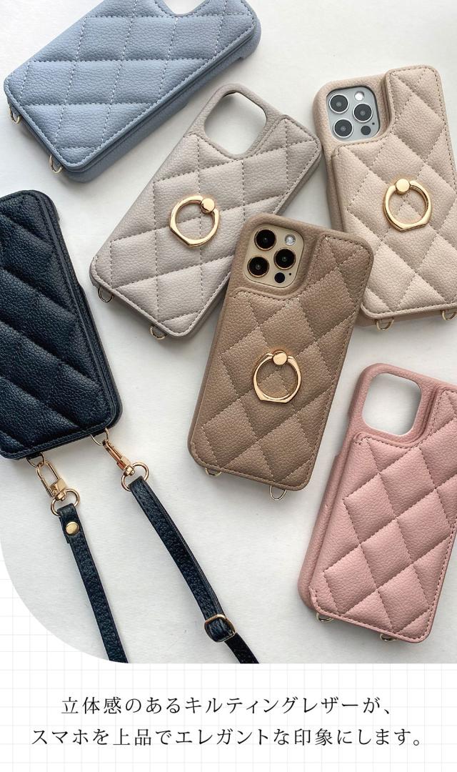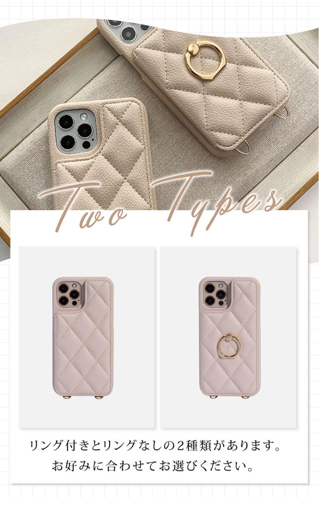 - カラーはエクリュを購入しましたが 思ったよりピンクよりでした 写真では白っぽい感じだったので 赤のiPhoneとは合わなかったです キルティング感は問題なし。 在庫がリングつきしかなくリングつきを購入...