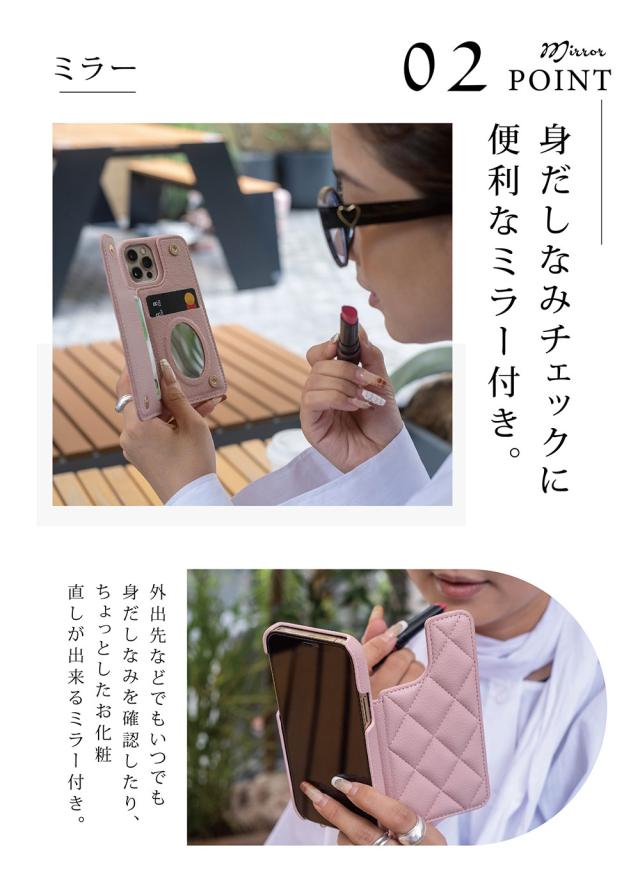 *外出先などでもいつでも身だしなみを確認したり、ちょっとしたお化粧直しが出来るミラー付き。
