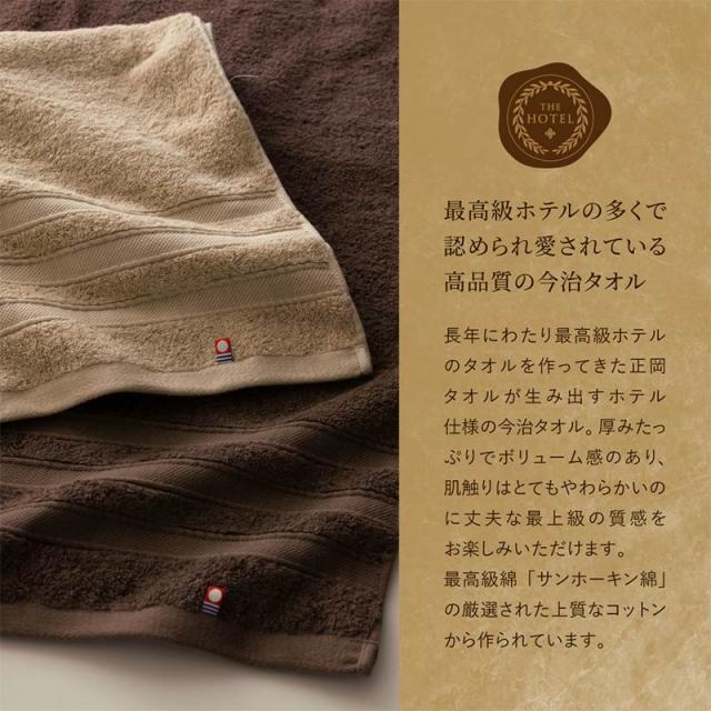 最高級ホテルが認めた高い品質基準のホテルタオル。長年にわたり最高級ホテルのタオルをつくってきた正岡タオルの技術力が作り上げた厚みたっぷりでボリューム感のあるホテル仕様タオルで、肌触りはとてもやわらかいのに丈夫な質感をお楽しみいただけます。厳選されたサンホーキン綿を使用し、最高級ホテルの仕様そのままに、オリジナルなシンプルなデザインとインテリアにも馴染みやすいカラーでお届けします。