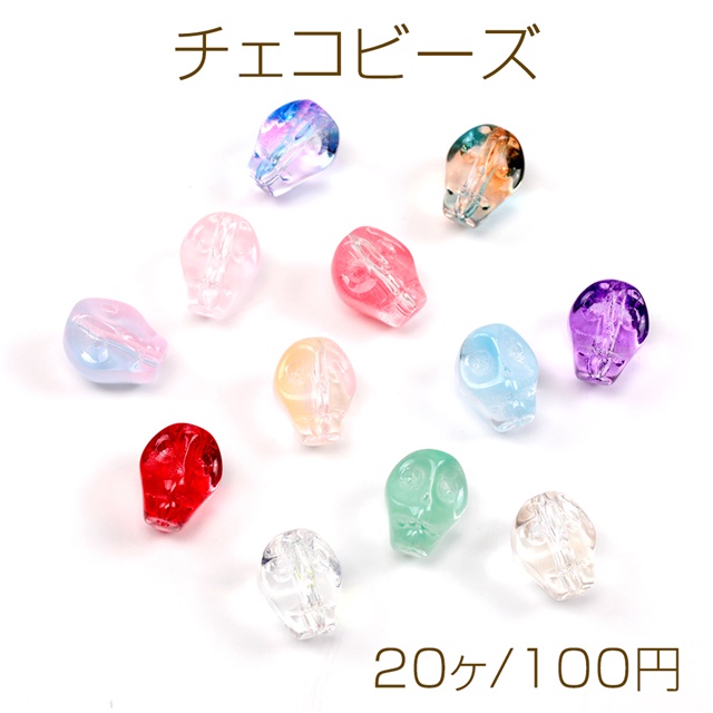 チェコビーズ チェコガラスビーズ スカルビーズ ガイコツビーズ ドクロビーズ 骸骨ビーズ 通し穴あり 約8×10mm(20ヶ)