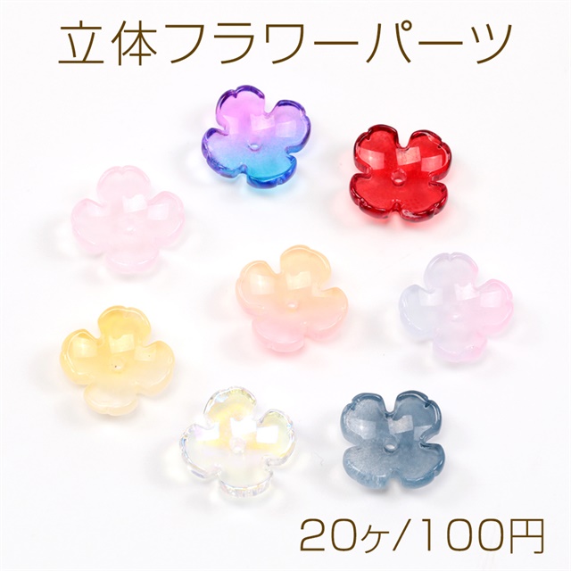 立体フラワーパーツ チェコガラスチャーム ビーズキャップ フラワーチャーム 花座 四弁花 中心穴あり 約12mm(20ヶ)