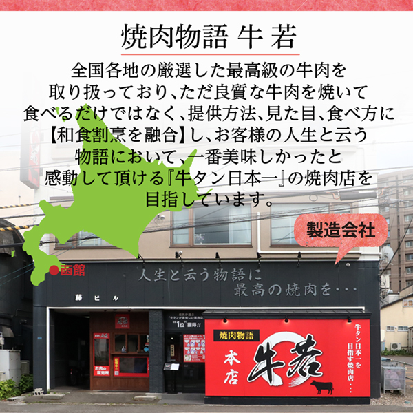 製造者 :焼肉物語 牛若 北海道函館市本町9-28 寿ビル1階