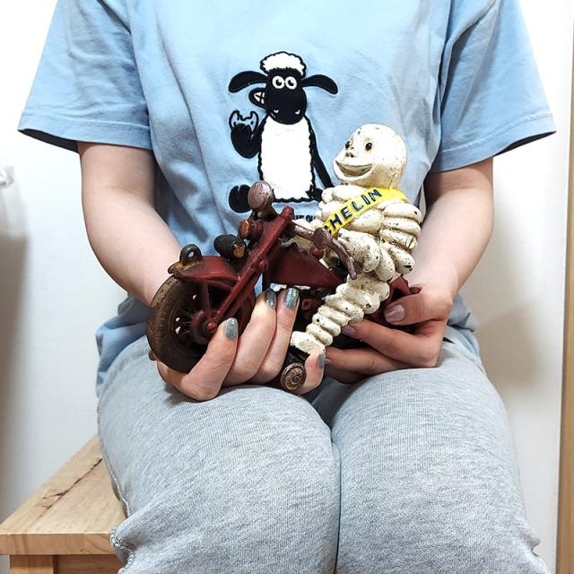 タイヤマン キャストアイアン 置物 バイク ヴィンテージ ミシュラン かわいい ガレージ おしゃれ 鋳鉄 レトロ アンティーク
