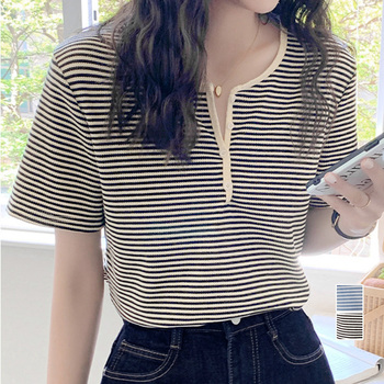 ボーダー柄Tシャツ Vネックカットソー夏