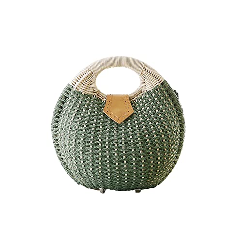Muzhilun 草編みバッグ かごバッグ 丸型 手提げカバ 可愛い 編みかご レディース ビーチバッグ 手織りおしゃれ 大容量 夏バッグ ビーチ