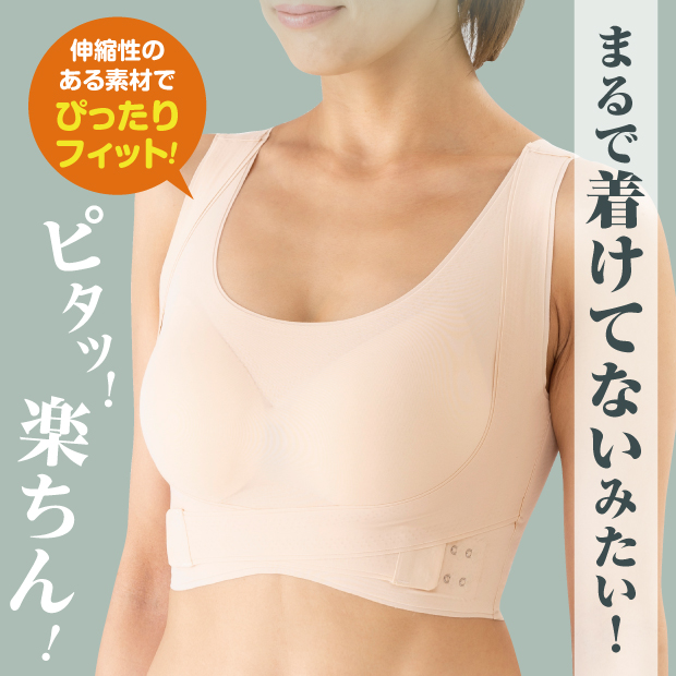 猫背 背筋補正下着 腰ベルト ノンワイヤー腰らくブラ ベージュ