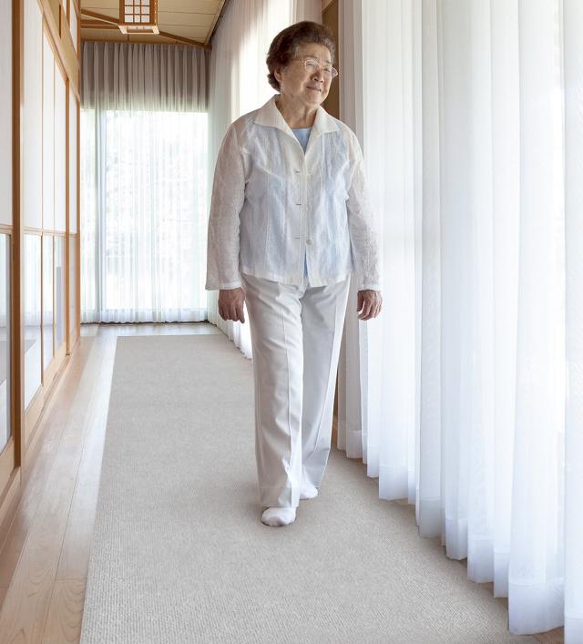 廊下やダイニングなど、広い面に敷きやすいロングタイプの吸着マットです。床の傷防止や音対策にも役立ちます。