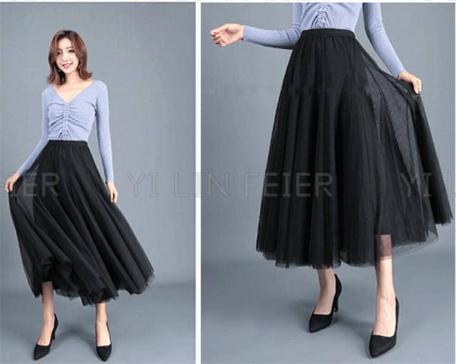 二重チュールの十分なプリーツが入っていて、おしゃれで可愛い雰囲気たっぷりしたロングスカートが登場しました。