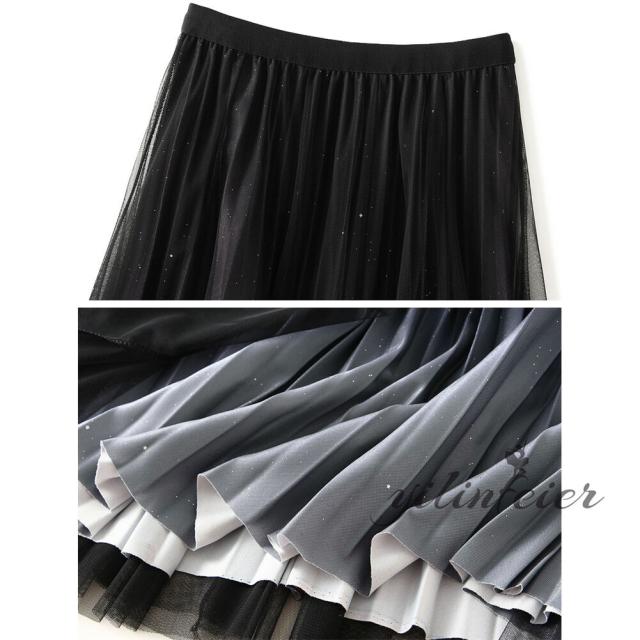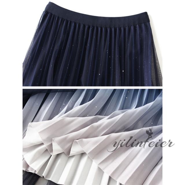 4色展開プリーツスカート ウエストゴム 魅力 お洒落 無地 裏地付き 着痩せ 体型カバー お出かけ社交ダンス スカート メッシュ 広がる裾 エレガント モダンダンス コーラス 大きい
