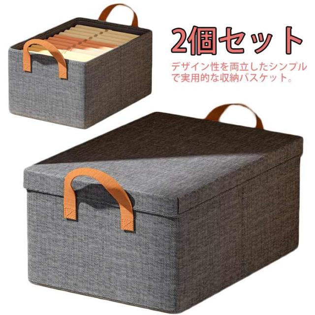 取っ手付 収納ボックス ふた付き バスケット 2個セット 大容量 おしゃれ ストレージボックス 衣類 おもちゃ収納 おもちゃ箱 押入れ収納 シンプル 折りたたみ