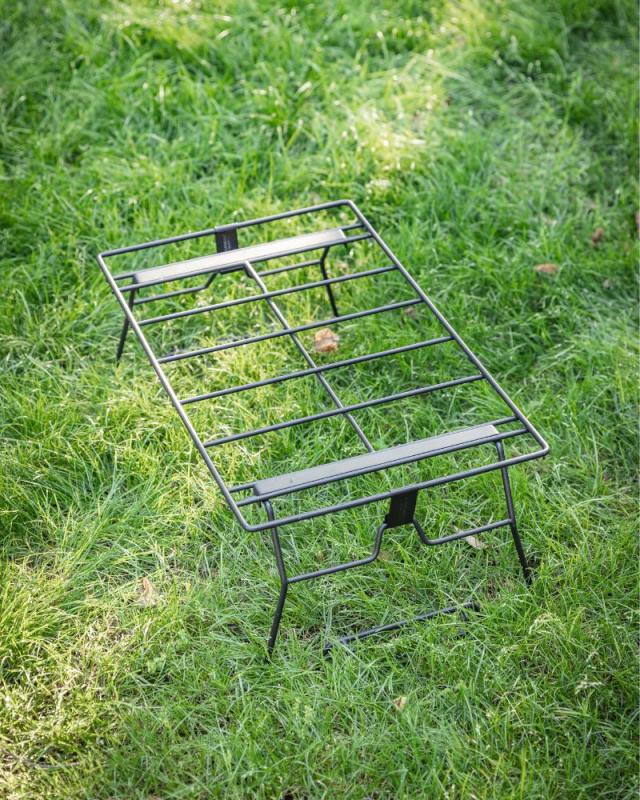 | Q&A | よくあるご質問 Q.熱々のダッチオーブンを載せられますか? A.天板は耐熱仕様。たき火での吊り鍋料理をしたダッチオーブンを直置きすることも可能です。 ※直火に耐えられる塗料ではありません。 Q.耐荷重は何kgまでですか? A.分散荷重30kgまでとなります。 Q.フィールドラック用コーナーエクステンションを使って連結できますか? A.フィールドラック用コーナーを使って、スタッキングラック2台を並べることができます。 Q.商品内容を教えてください。 A.スタッキングラック アイアンの単品です。 Q.収納ケースは付属されていますか? A.専用ケースは付属しておりませんので、必要に応じて「フィールドラック 収納ケース B-230」をご検討ください。 |