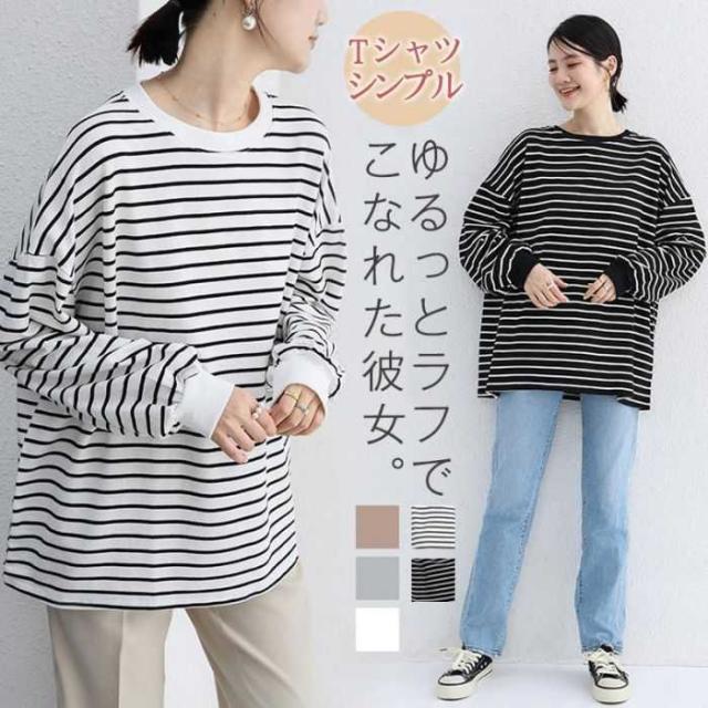 ★キーワード:ボーダー やわらか ゆるTシャツ レディースファッション 20代 30代 40代 50代 ゆるトップス ラウンド襟 無地 楽チン レイヤード 切り替え 春 秋 冬 夏 秋服 プレゼント 敬老の日 ギフト 誕生日 大きめ 大きいサイズ マタニティ マタニティー 綿 コットン オーバーサイズ ロングTシャツ ティーシャツ ベーシック プリント シルエット ビッグシルエット 伸縮性 着心地よい ラウンドカットTシャツ クルーネック チュニック 大人 お洒落 おしゃれ かっこいい ビッグT 韓国 きれいめ 無地