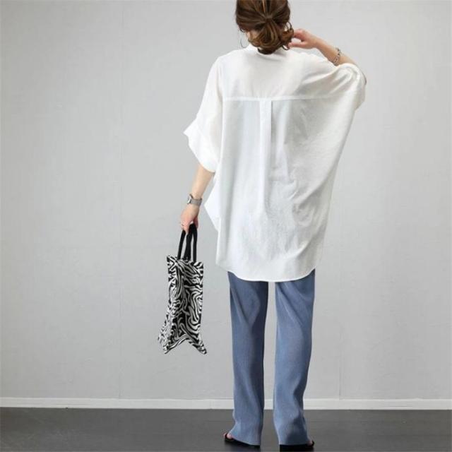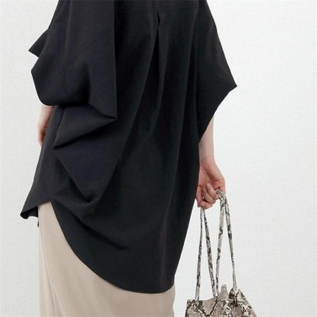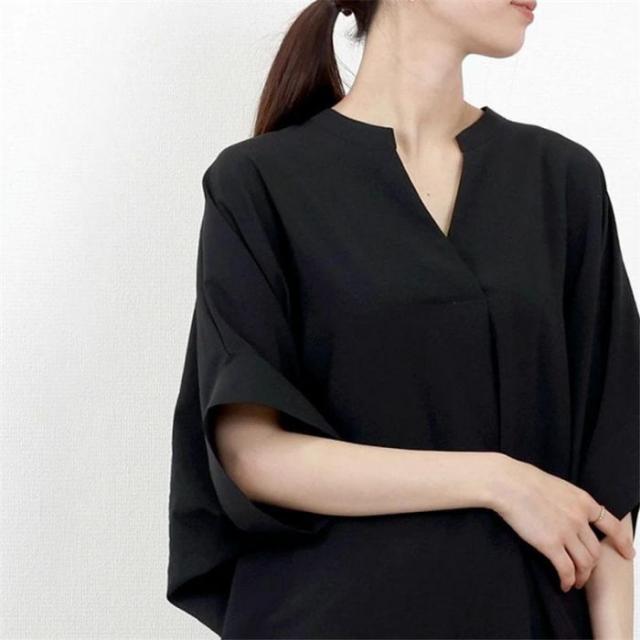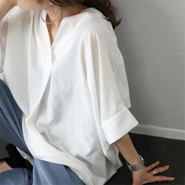 ブラウス レディース Tシャツ 七分袖 Vネック シャツ トップス パフスリーブ プルオーバー 体型カバー ゆったり シンプル 通勤 可愛い 着痩せ