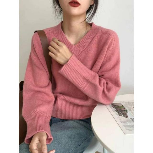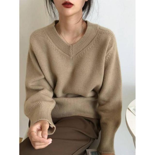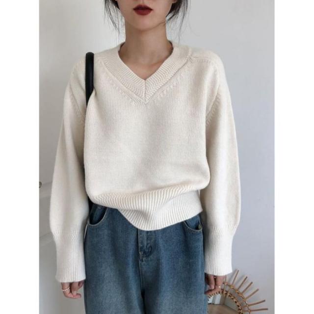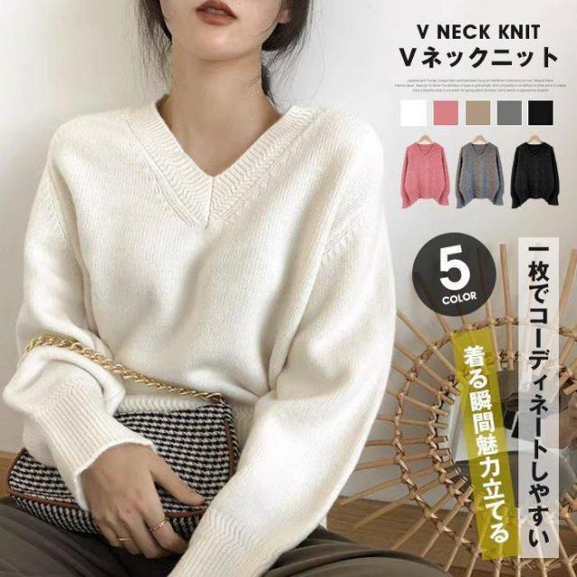 ニット レディース Vネックニット トップス セーター 一枚でコーディネートしやすい プルオーバー Vネック 長袖 チュニック ゆるニット ニットトップス 早秋新作