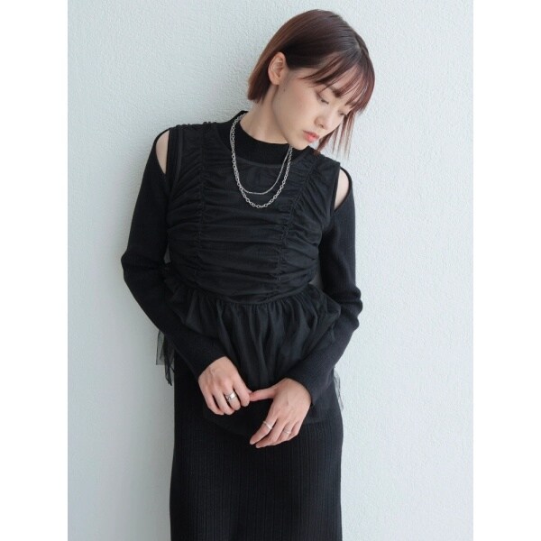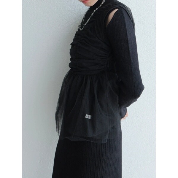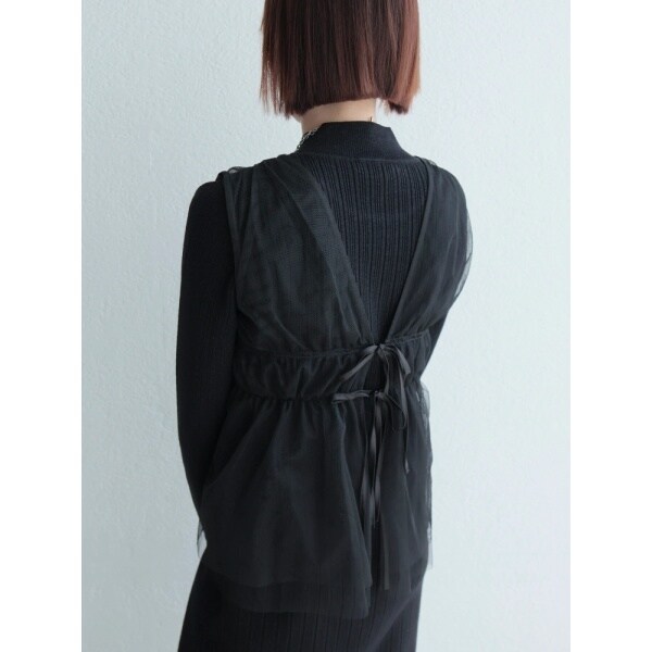 ●チュールベストはペプラムシルエットで前後どちらでも着用可能。