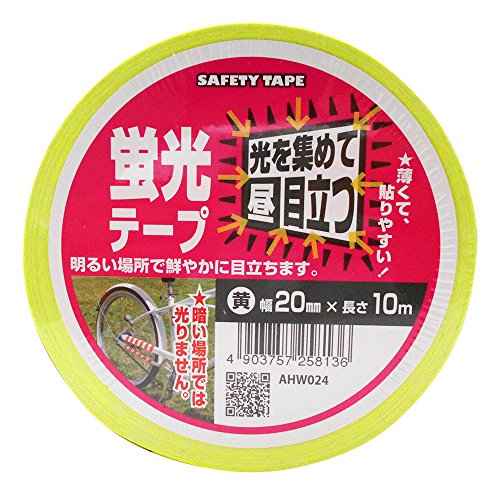 和気産業 蛍光テープ 黄 幅20mmX長さ10m 自転車 ヘルメット 看板 AHW024