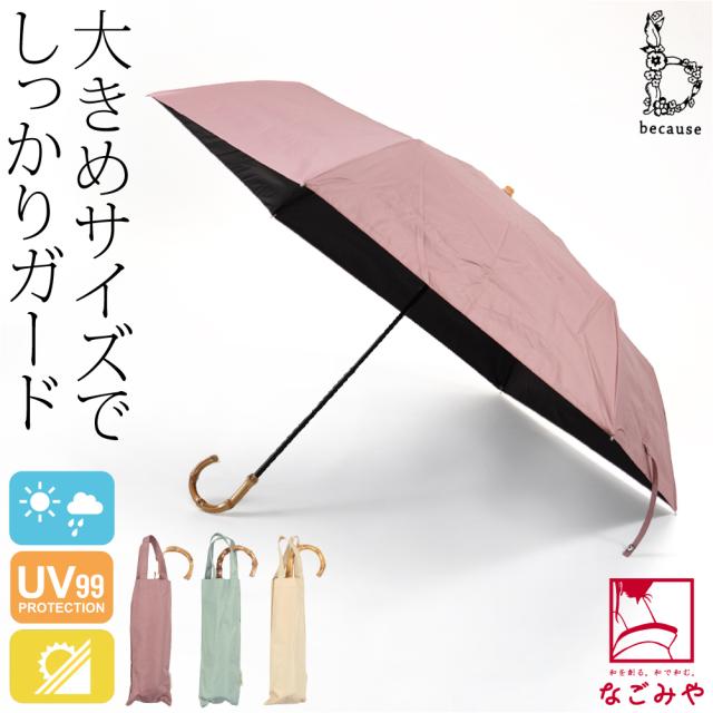 晴雨兼用 日傘 雨傘 通年用 because 折りたたみ傘 プレーンカラーラージ ミニ 遮光 暑さ 熱中症 日焼け 紫外線 UV 対策 おしゃれ 大人 女性 男性10024080