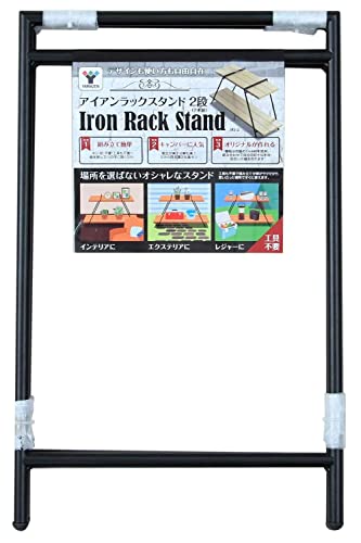 [山善] アイアンラック 2段 ガーデンラック 木材別売り 組立簡単 スチールラック 多目的ラック レジャー ベランダ テラス 花台 工具不要 ガーデンマスター ブラック IRS-22