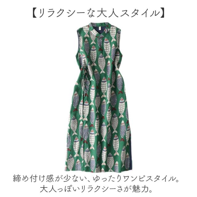 | 商品説明 | 【エスニックデザインがポイント☆】 ・サラっと着るだけで、華やか夏コーデが完成。「ノースリーブワンピース」が登場。 【夏にぴったりなエスニックコーデ】 ・キュートなお魚柄で、グッと垢抜けた印象に仕上がる1枚。サラっと涼し気な雰囲気がGOOD♪ 【着るだけで上級者の着こなしに♪】 ・少し詰まったノーカラーネックとサイドの深いスリット。こだわりたっぷりの高デザイン。 【抜け感をプラスして爽やかさUP】 ・サイドのスリットからのぞく、ブルーのインナーが爽やかな雰囲気♪柄物でも重たくならない◎ 【体型カバーも叶うマキシワンピ】 ・マキシ丈で、ばっちり体型カバー。長めの丈感で縦ラインが強調されるからスタイルUP! 【ポケットつきでお出かけ便利に】 ・片側にポケットを1つ配置。スマホなどの小物を入れられるから便利。 【リラクシーな大人スタイル】 ・締め付け感が少ない、ゆったりワンピスタイル。大人っぽいリラクシーさが魅力。 |