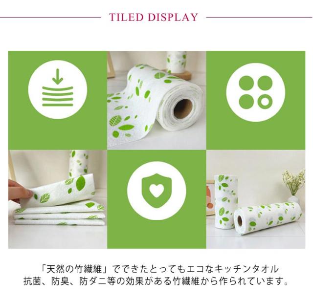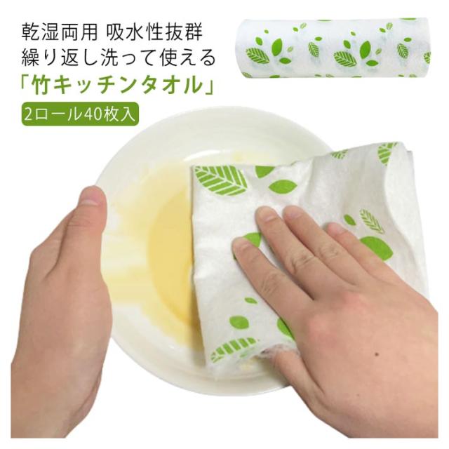 | 乾湿両用 吸水性抜群 繰り返し洗って使える「竹キッチンタオル」 28*28cm 2ロール40枚入 ●「天然の竹繊維」でできたとってもエコなキッチンタオル 抗菌、防臭、防ダニ等の効果がある竹繊維から作られています。 竹キッチンタオルは従来のペーパータオルよりも耐久性があり、 より吸収性があり、そしてよりナチュラルです。 とってもエコなキッチンタオル。 ●繰り返し洗って1枚あたり80回使える!1ロール1600回使用可能! 1.超丈夫!強力な繊維で破れません! 2.超エコ!竹繊維が持つ抗菌効果で繰り返し使える! 3.超吸水!こぼれたジュースやソースも瞬で拭き取れる! ●ガンコな油汚れのお掃除にも使え、吸収力も高いから万能に使えます。 ●竹キッチンタオルはお肌にやさしくメイク落としにも最適。 化粧をキレイに落とすことができます。 ●使いやすい設計 切り取り線が入っていて1枚1枚切りやすいのでストレスフリーです。 力の弱い方やお子さま、高齢の方でもカンタンに絞ることができます。 ●一般的なペーパータオルよりもお得なコストでお使いできます。 | |