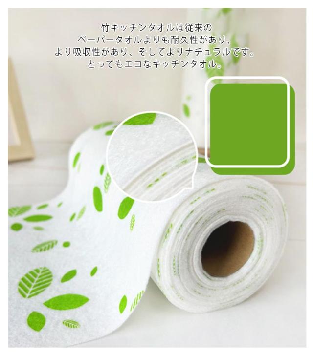 キッチンタオル キッチンペーパー 柄付き 吸水性抜群 ペーパータオル 竹 可愛い キッチンクロス バンブー 厚手 不織布 ふきん 雑巾 抗菌 乾湿両用 【2ロール40枚セット】 繰り返し使える 丈夫 バンブータオル 中判 28×28cm