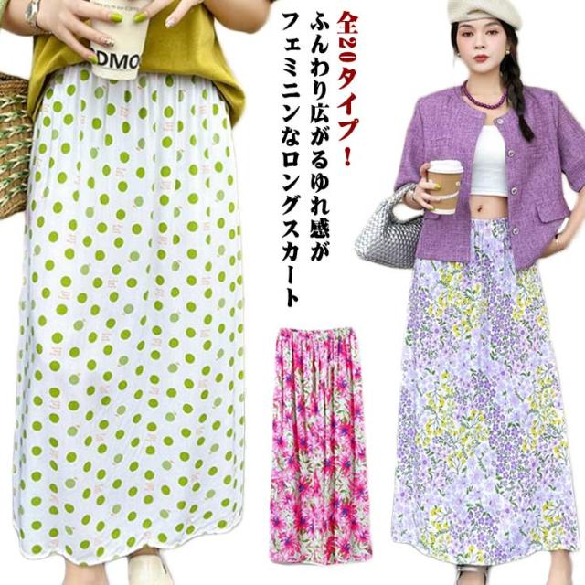 | 全20タイプ!ふんわり広がるゆれ感がフェミニンなロングスカート 涼しげなシフォン素材で夏にぴったり Aラインに広がるスカートは腰回りをしっかりとカバー◎ ウエストゴムで着心地もラクです♪ トップスのインスタイルでスッキリとした着こなしにぴったり | |
