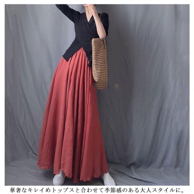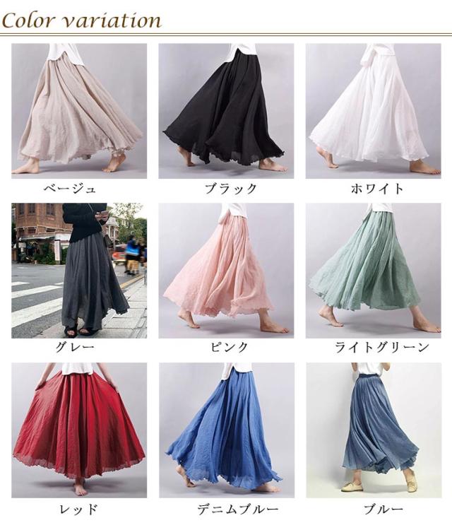 ロングスカート リネンスカート ふんわり レデイース リネン風スカート リゾート フレア 綿麻混 スカート マキシスカート マキシ スカート ふわり 亜麻 体型カバー フレア フレアスカート 薄手 涼しい 綿麻風 リネン風 春夏 長さ75cm/85cm/95cm