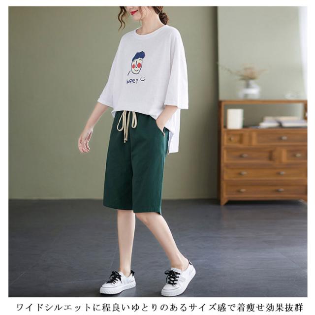 | 夏ファッションに必ず大活躍のマストアイテム 肌あたりサラサラな履き心地で暑い夏に活躍! ゆったりめシルエット&ウエスト総ゴムで楽ちん 通気性良くて柔らかくてしっかりした質感です ワイドシルエットに程良いゆとりのあるサイズ感で着痩せ効果抜群 華奢な足首を強調する七分丈仕様も夏らしい爽やかな印象を付けた | |