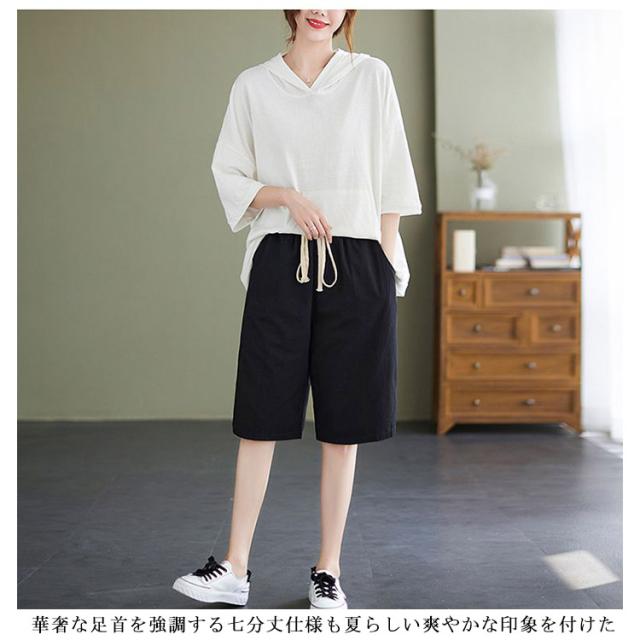 きれいめ ワイドパンツ パンツ レディース 春夏 夏 ゴム クロップトパンツ 凉しい 7分丈 ガウチョパンツ 七分丈 リネンパンツ ワイドパンツ 綿麻パンツ パンツ スカーチョ ガウチョ スカンツ 綿麻風 大きいサイズ リネン 無地 七分丈パンツ カジュアル シンプル
