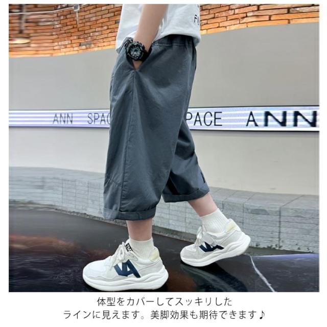 | 110-170cm!カジュアルさたっぷりしたワイドパンツ 涼やかな穿き心地を追求した素材を使用。汗ばんでも密着せずサラッとしたドライ感。 七分丈でこれから季節に大活躍できます 体型をカバーしてスッキリしたラインに見えます。美脚効果も期待できます♪ tシャツ、シャツなど組み合わせ抜群な薄手ズボン | |