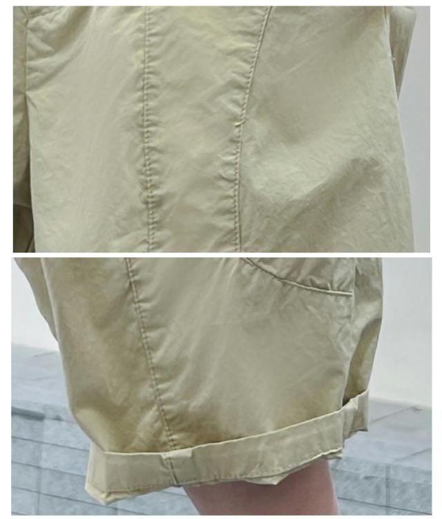 | ●サイズ詳細等の測り方はスタッフ間で統一、徹底はしておりますが、実寸は商品によって若干の誤差(1cm〜3cm )がある場合がございますので、予めご了承ください。 ●商品の色は、撮影時の光や、お客様のモニターの色具合などにより、実際の商品と異なる場合がございます。あらかじめ、ご了承ください。 ●製品によっては、生地の特性上、洗濯時に縮む場合がございますので洗濯時はご注意下さいませ。 ▼色味の強い製品によっては他の衣類などに色移りする場合もございますので、速やかに(脱水、乾燥等)するようにお願いいたします。 ▼生地によっては摩擦や汗、雨などで濡れた時は、他の製品に移染する恐れがございますので、着用の際はご注意下さい。 ▼生地の特性上、やや匂いが強く感じられるものもございます。数日のご使用や陰干しなどで気になる匂いはほとんど感じられなくなります。 | |