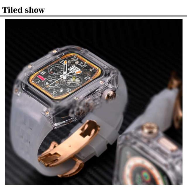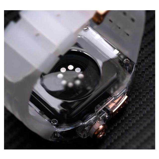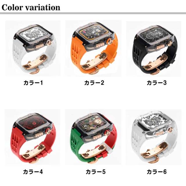 | アップルウォッチ用フッ素ゴムベルト+ケース。 カジュアルなアップルウォッチが上品で高級感のある腕時計のようになるケースベルトです。 ベルトは水に強い素材です。濡れたら乾いた布でさっと拭くだけ。汚れても水拭きできるので清潔感が保てます。あなたのアップルウォッチをワンランク上に。 | |