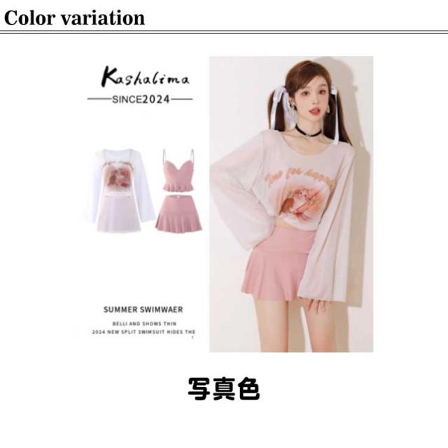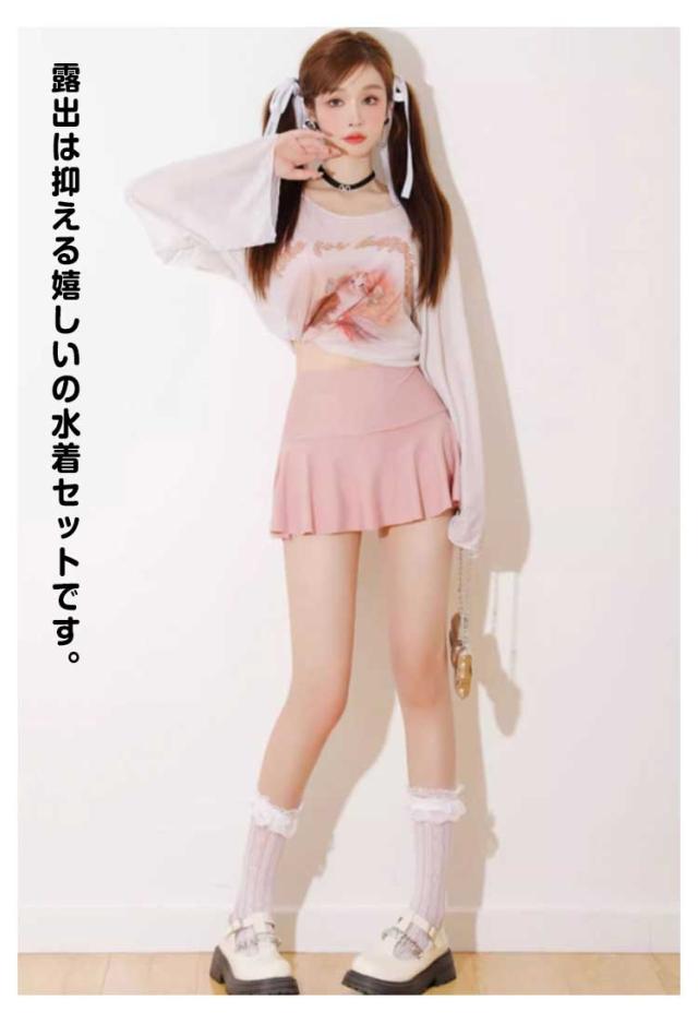| かわいい猫柄デザイン、日焼け止め効果あり長袖トップスで体型カバーもできて楽しめる水着3点セットです。 ワイヤー入りなので、バストをしっかりアップ! 気になるお腹や二の腕までを可愛く、しっかり体型カバー効果補正出来るアイテムです。 露出は抑える嬉しいの水着セットです。 | |