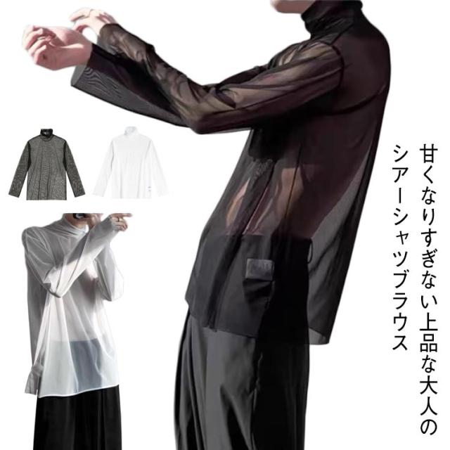 重ね着 シアー セクシー シアー メンズ トップス トップス シースルー ロンT インナー タートルネック メッシュ 秋 おしゃれ 透け 長袖 カジュアル 薄手 メンズ 黒 透け感 韓国 白 夏 シアーブラウス トップス シアーシャツ