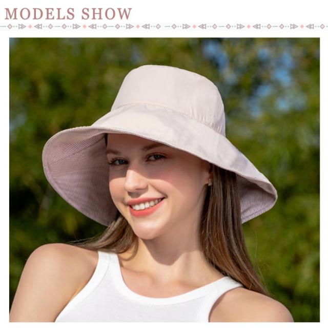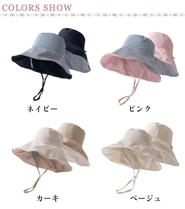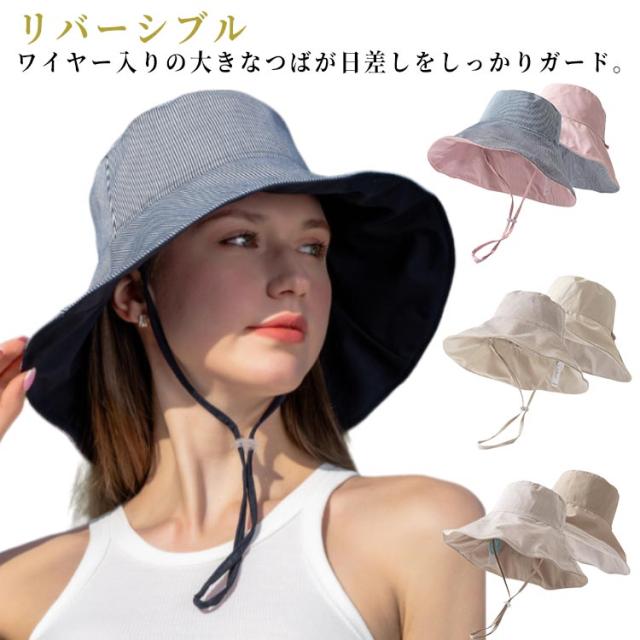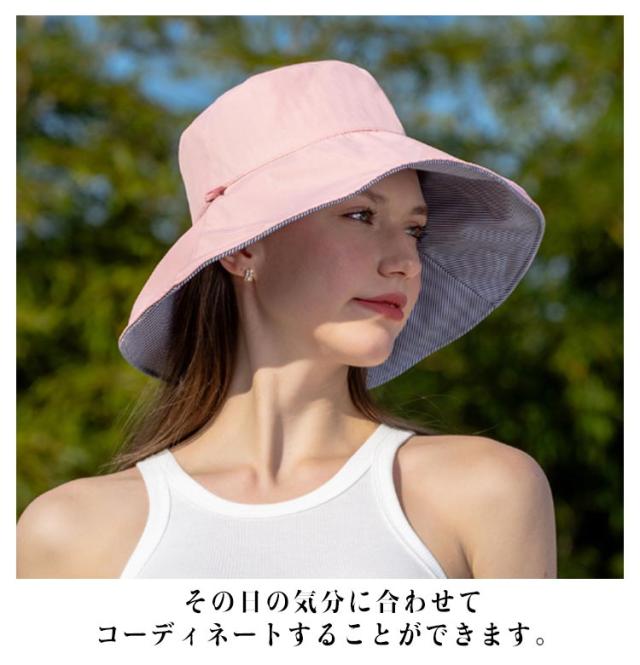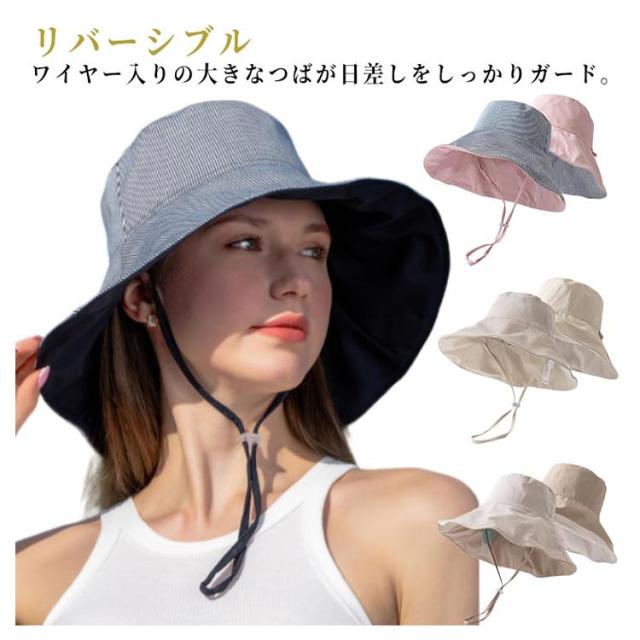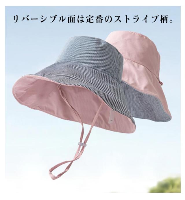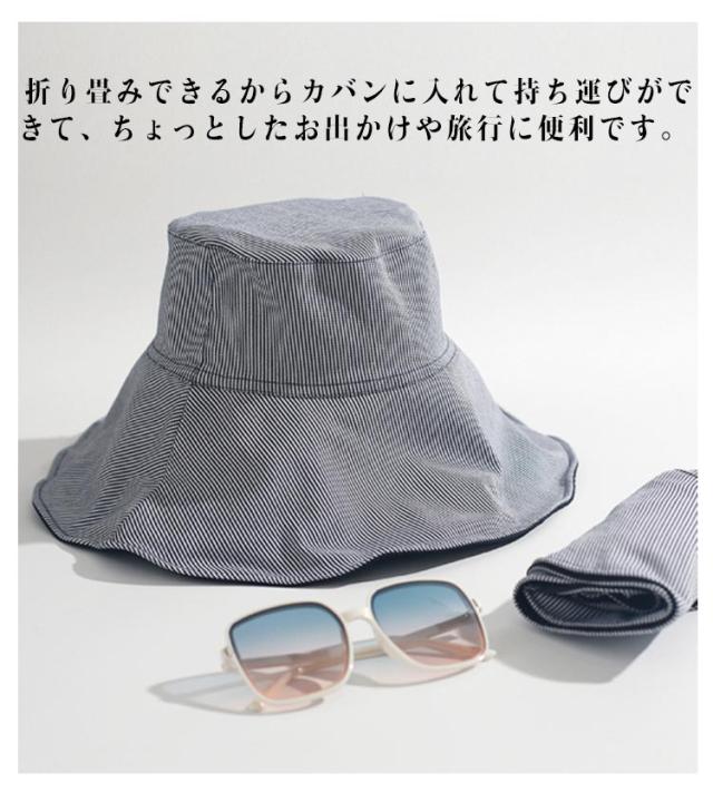 UVカット 折りたたみ レディース ストライプ 紫外線対策 つば広帽子 日よけ帽子 リバーシブル 日焼け防止 帽子 綿 可愛い 小顔効果 女優帽 無地 バケットハット