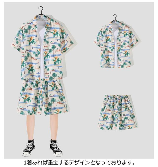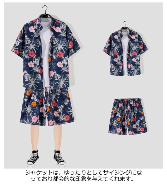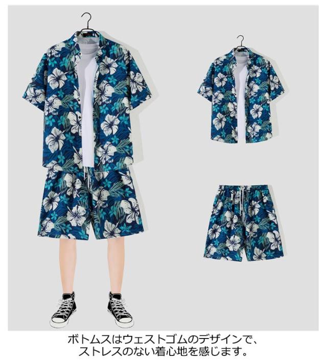 上下 アロハシャツ アロハシャツ アロハ ハワイ 夏 メンズ 夏 アロハ 花柄 セット 柄シャツ ショートパンツ 短パン カジュアルウェア アロハ柄 おしゃれ 部屋着 ボタニカル柄 沖縄 夏服 総柄 半袖 グアム旅行 リゾート 海辺 サーフ系 海 川