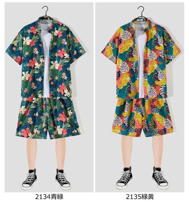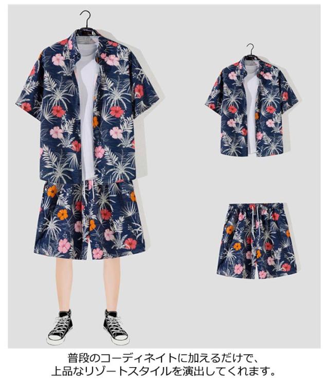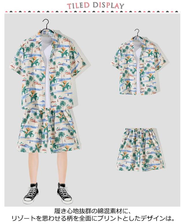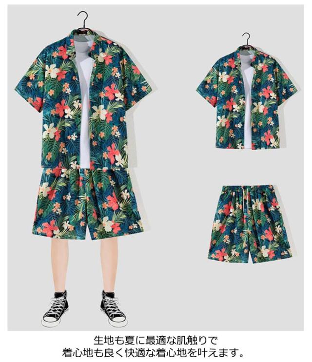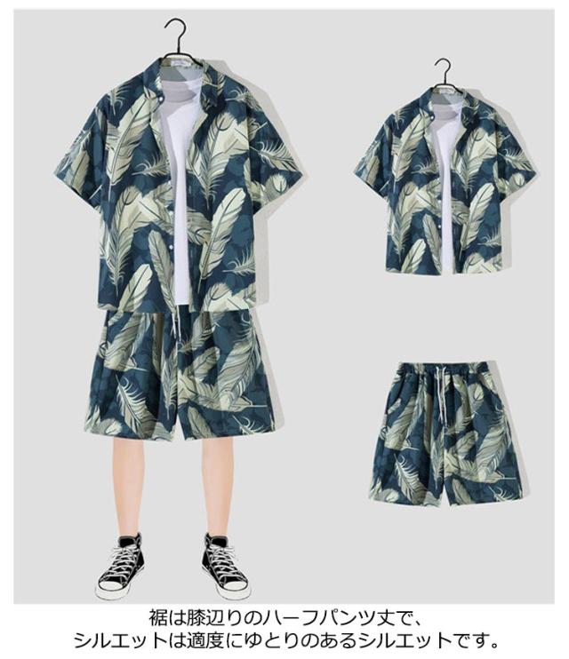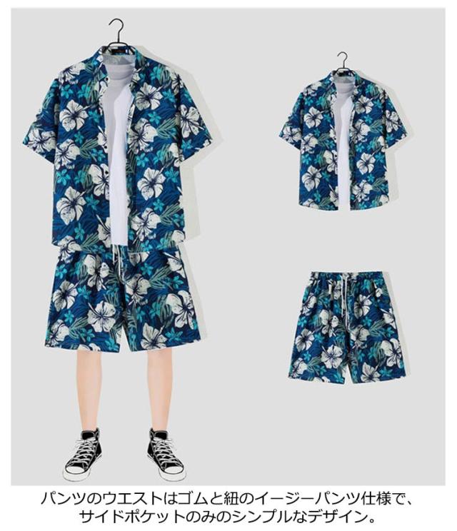 セットアップ レディース アロハシャツ メンズ 部屋着 ショートパンツ 半袖 ジャージ オープンカラー アロハシャツ 送料無料 パジャマ 7柄 ショーツ ルームウェア 上下 総柄 短パン ハーフパンツ 薄手 涼しい ストリート系 ワンマイルウェア
