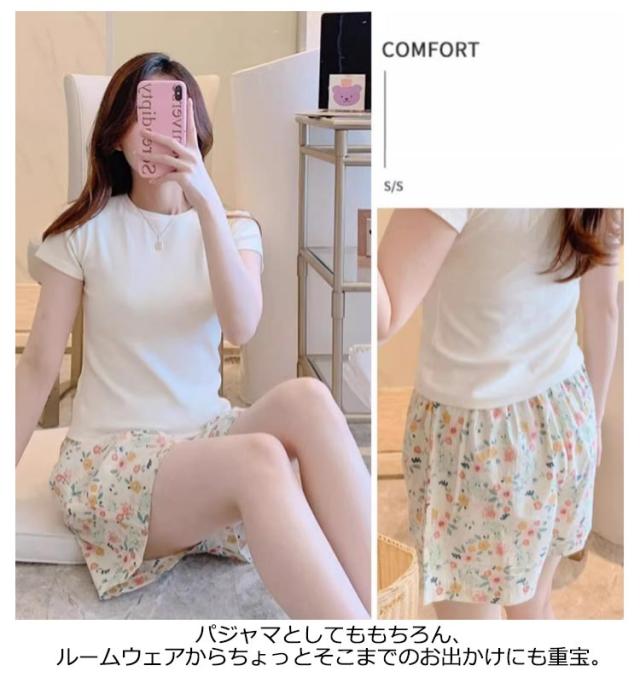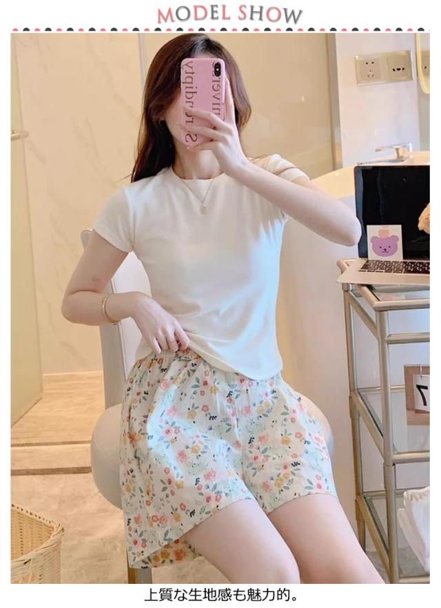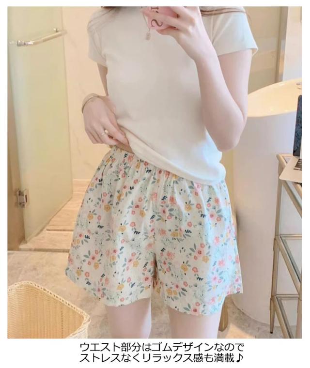 パンツ 春夏 短パン 花柄 リラックスウェア ルームパンツ ボトムス レディース ハーフパンツ UVカット ルームウェア 総柄 接触冷感 イージーパンツ リラックスパンツ ハーフパンツ 部屋着 女子 女の子 半ズボン パジャマ 室内着 短パン ゆったり シンプル 肌着 ズボン 女性