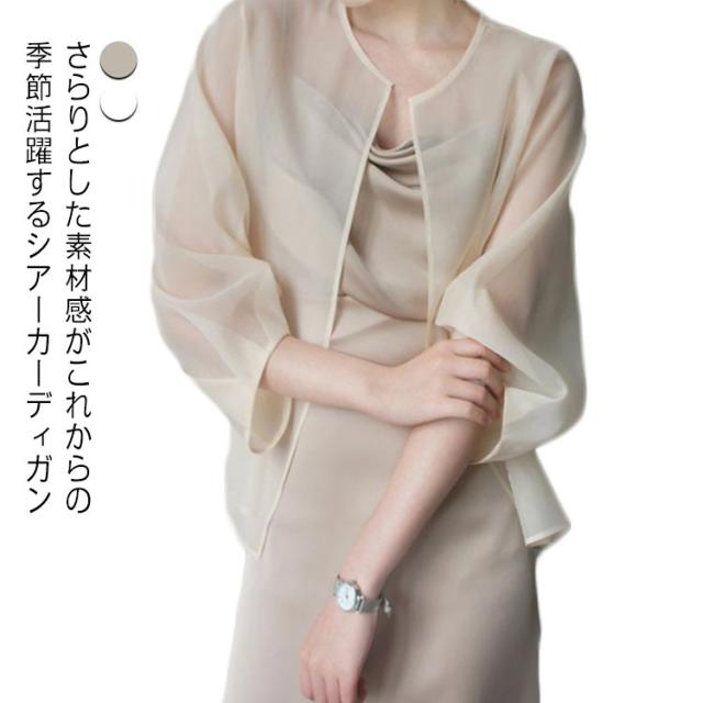 羽織り サマー ショート丈 透け感 シフォン レディース アウター シースルー シア— シア—シャツ ライトアウター サマー ジャケット ノーカラー オフィス カジュアル ママ 春