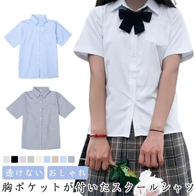 シャツ 半袖 スクール 女子 制服 胸ポケット シャツ 学生服 ブラウス ワイシャツ レディース 透けない 開襟 おしゃれ 中学生 高校生