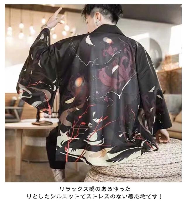 浴衣 着物風 羽織 和式 アウター 着物カーディガン 7分袖 カジュアル メンズ 和風 部屋着 着流しカーディガン 和式パーカー カーディガン 七分袖 トップス 開襟シャツ 甚平 甚平風 夏 着物カーディガン 大人 レディース ゆったり 夏祭り