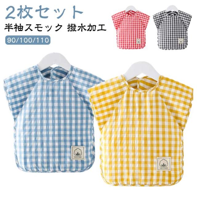 2枚セット!お食事エプロン エプロン 食事エプロン 離乳食 男の子 スモック 防水 入園準備 ロング お食事用エプロン 2枚セット!お食事エプロン 半袖 キッズ 保育園 幼稚園 赤ちゃん 綿 女の子 お食事 チェック柄 子供 幼児 90 100
