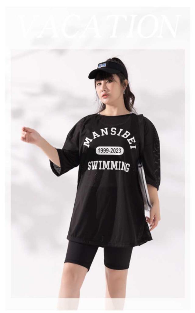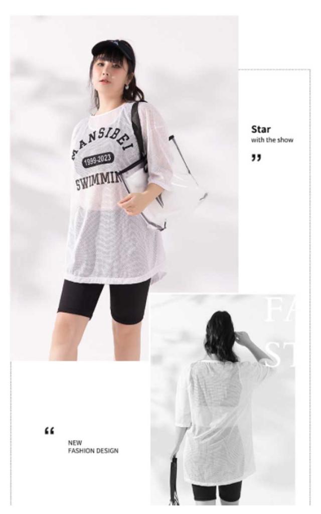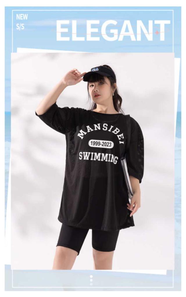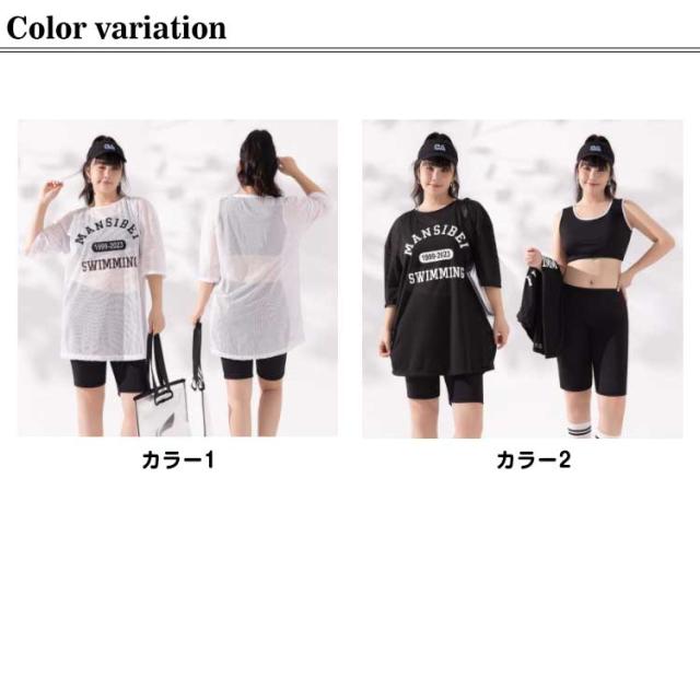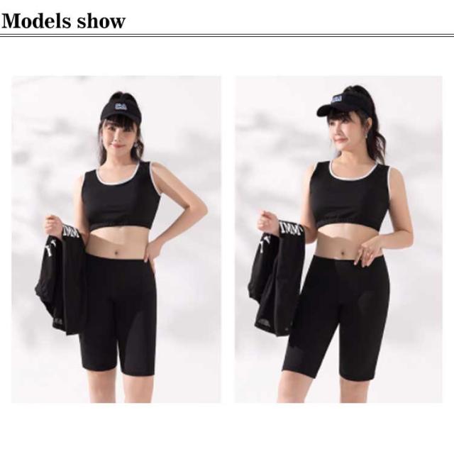| 大きいサイズ!スポーティーなデザインがおしゃれ、メッシュトップスで体型カバーもできて嬉しい! カップ付き、バストをしっかりカバー! 気になるお腹や二の腕までを可愛く、しっかり体型カバー効果補正出来る3点セットです。 水陸両用なので、ジムやヨガでも着用できる、便利なアイテムです。 | |